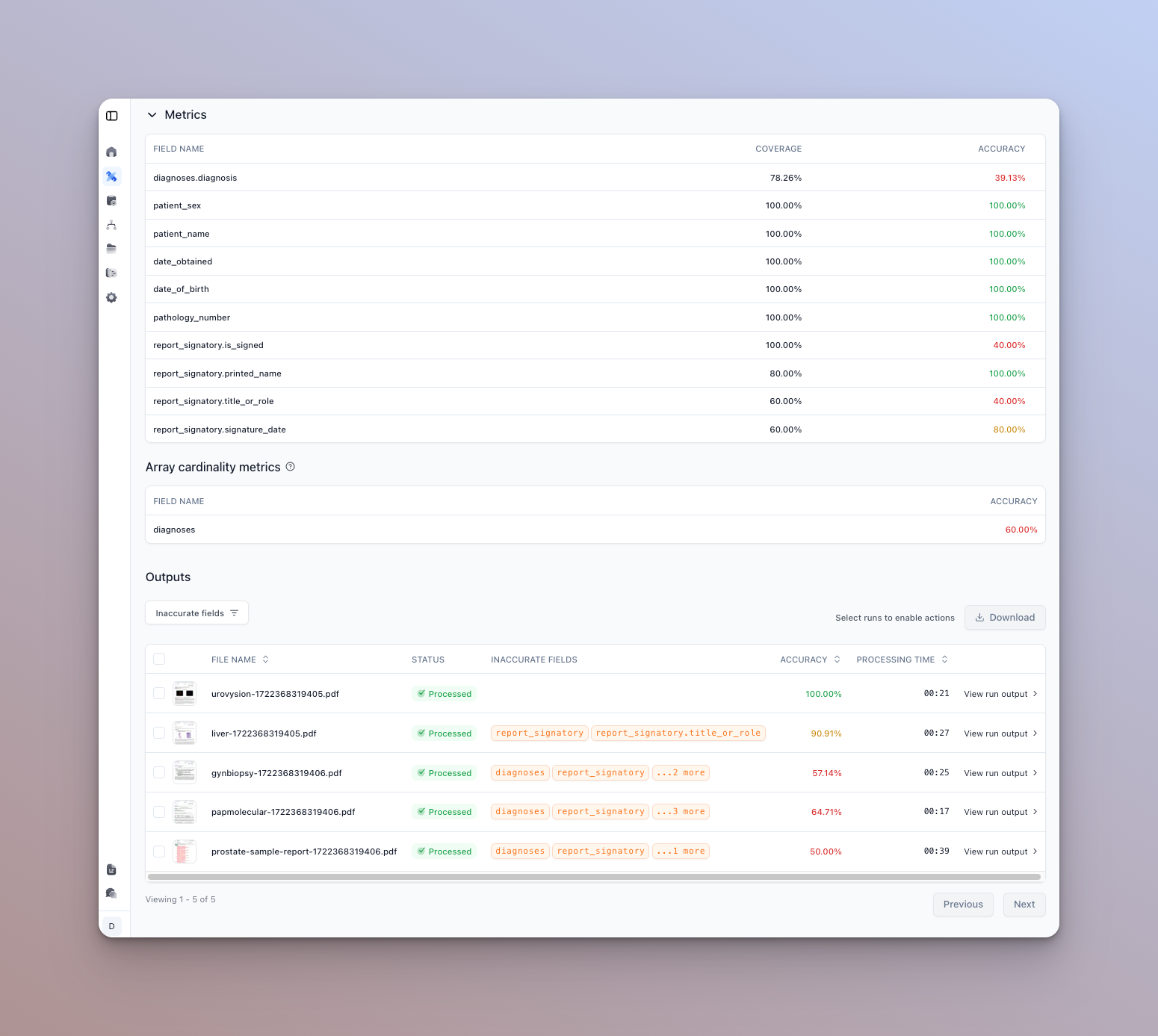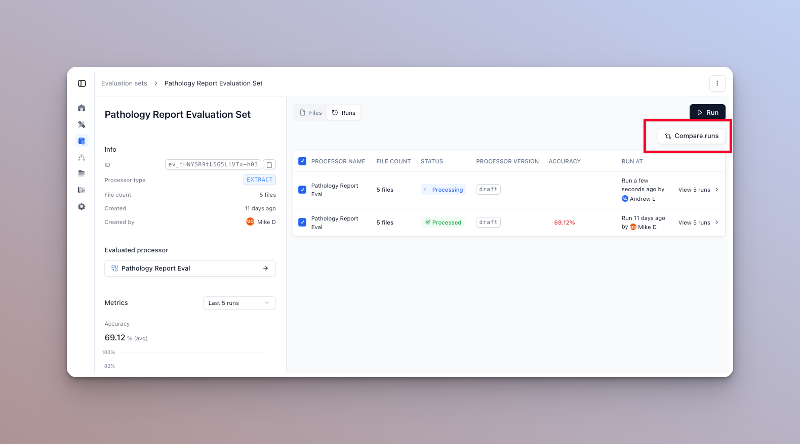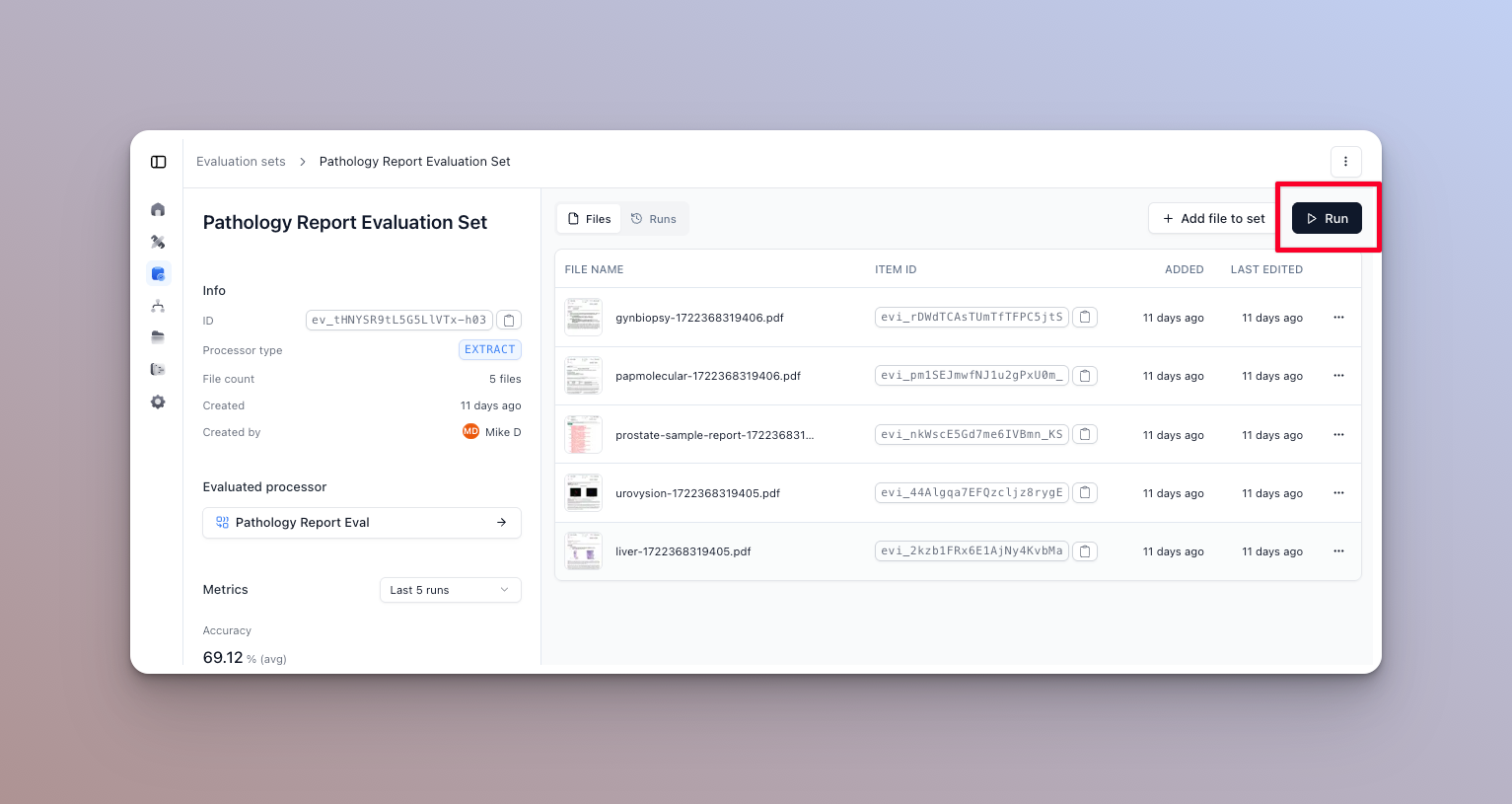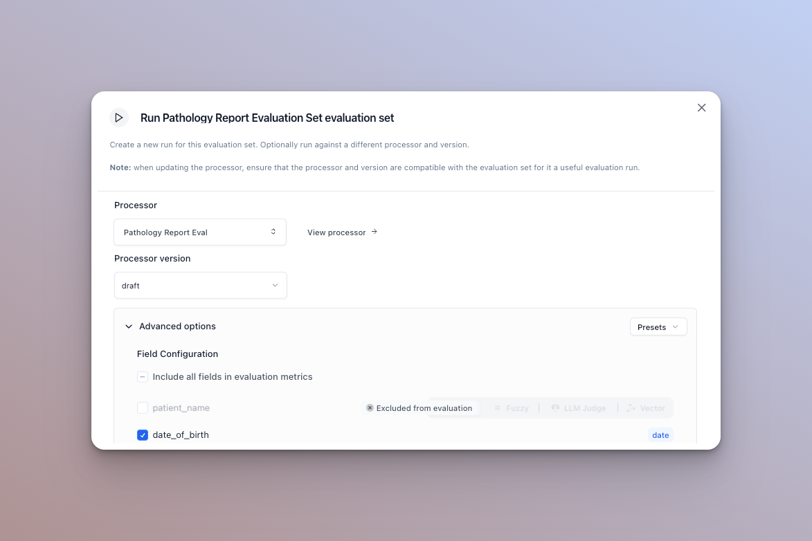 Running well maintained and up to date evaluation sets is one of the best ways to ensure that your AI document processors are performing as expected and to identify areas for improvement, while iterating.