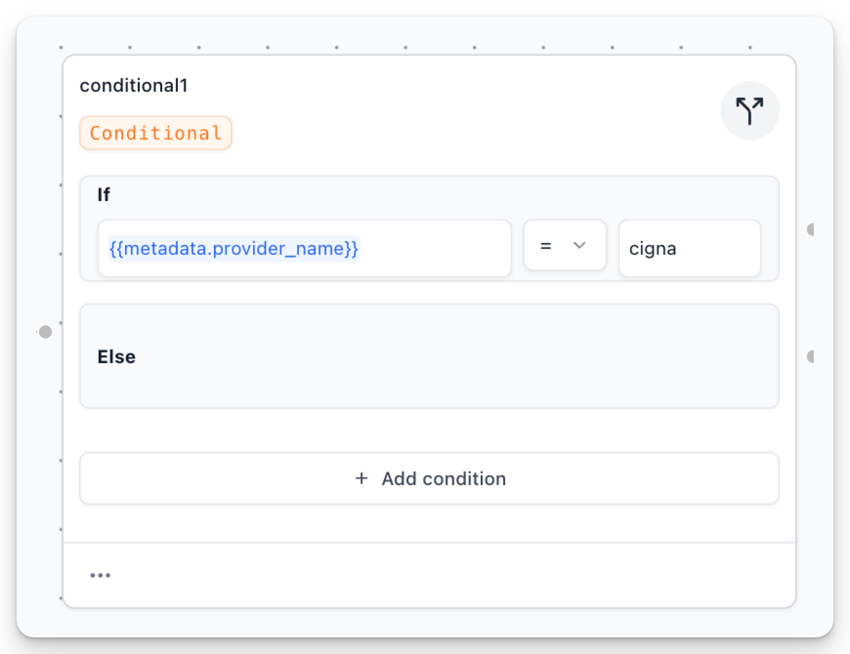 We can then use conditional logic on this value, such as checking if the {{metadata.provider_name}} equals "cigna".