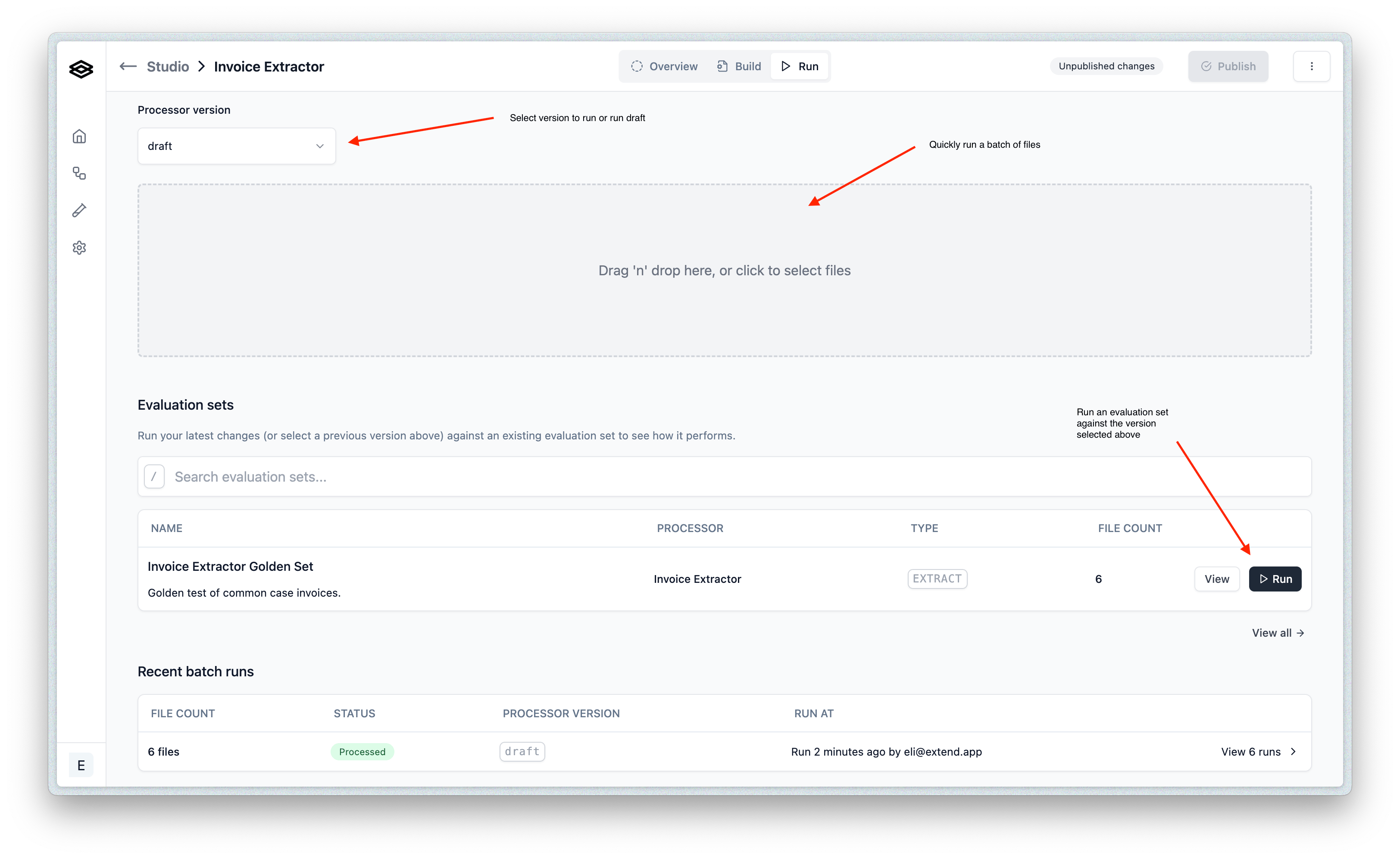 - Upload and run multiple files in a batch to see how your configuration performs across a diverse set of documents. (Supported file types can be found here).