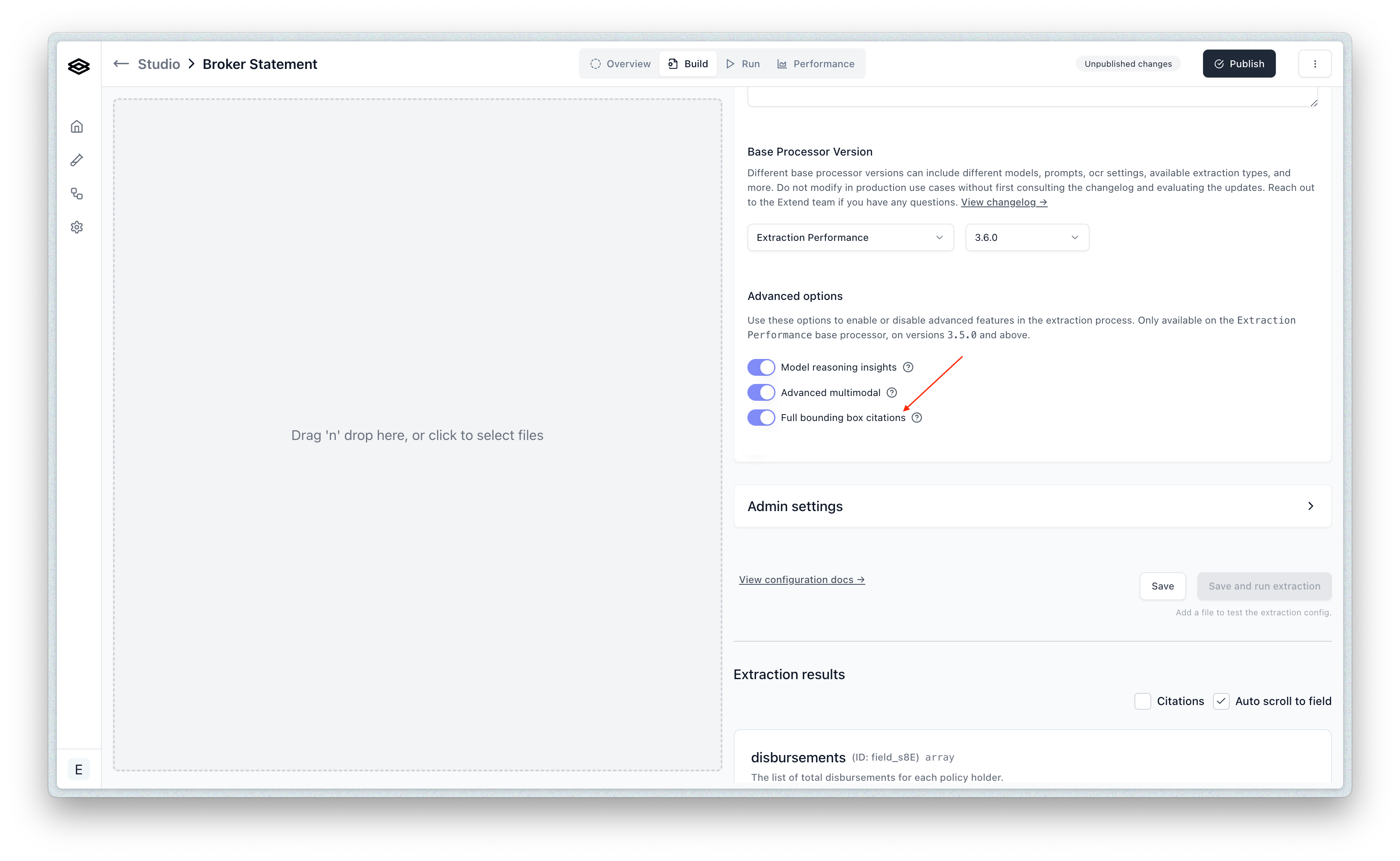 Citations are used for the modern JSON Schema configuration, while Bounding Boxes are used for the legacy Fields Array configuration. Extractors made after April 2025 are typically on the JSON Schema configuration.
