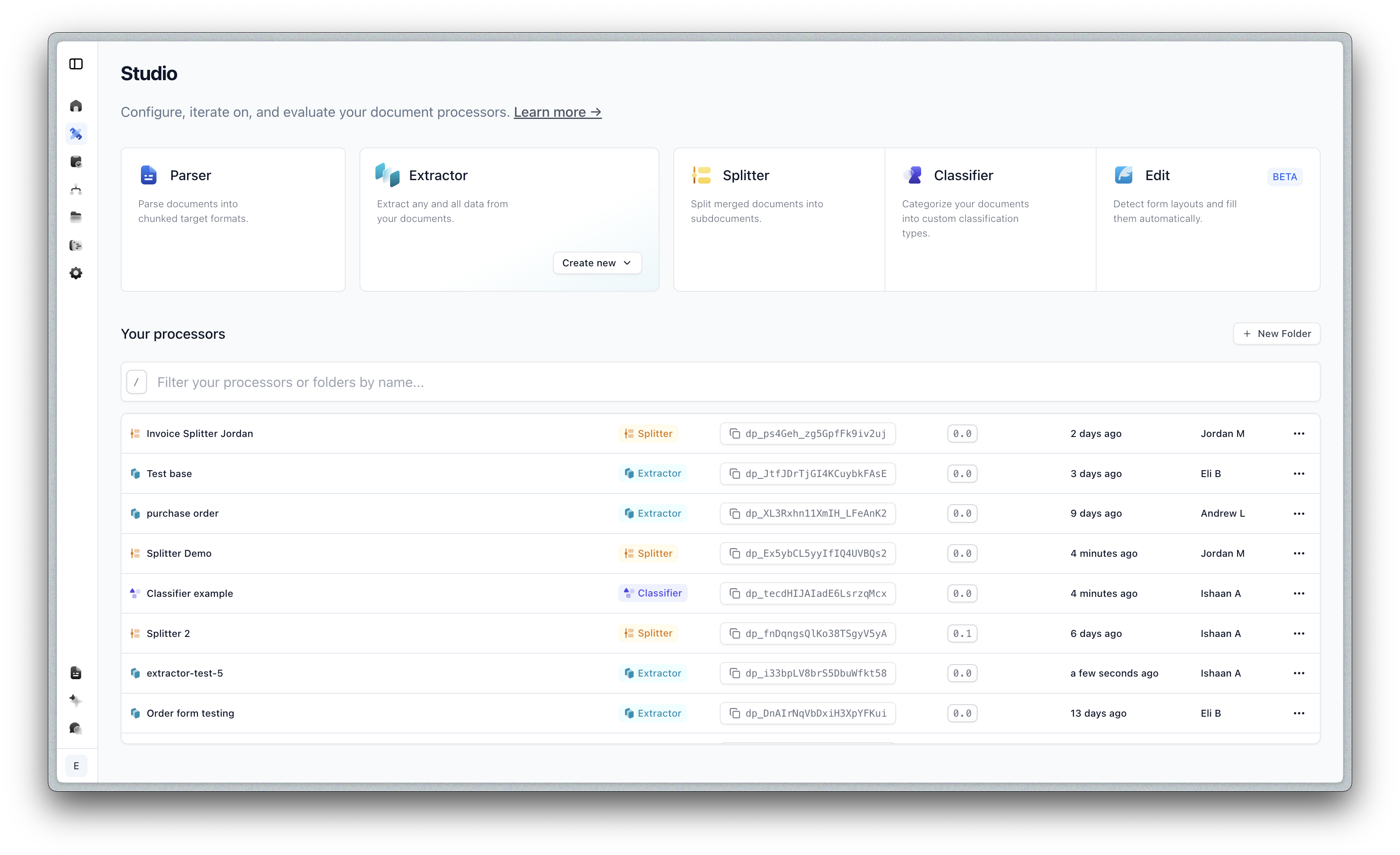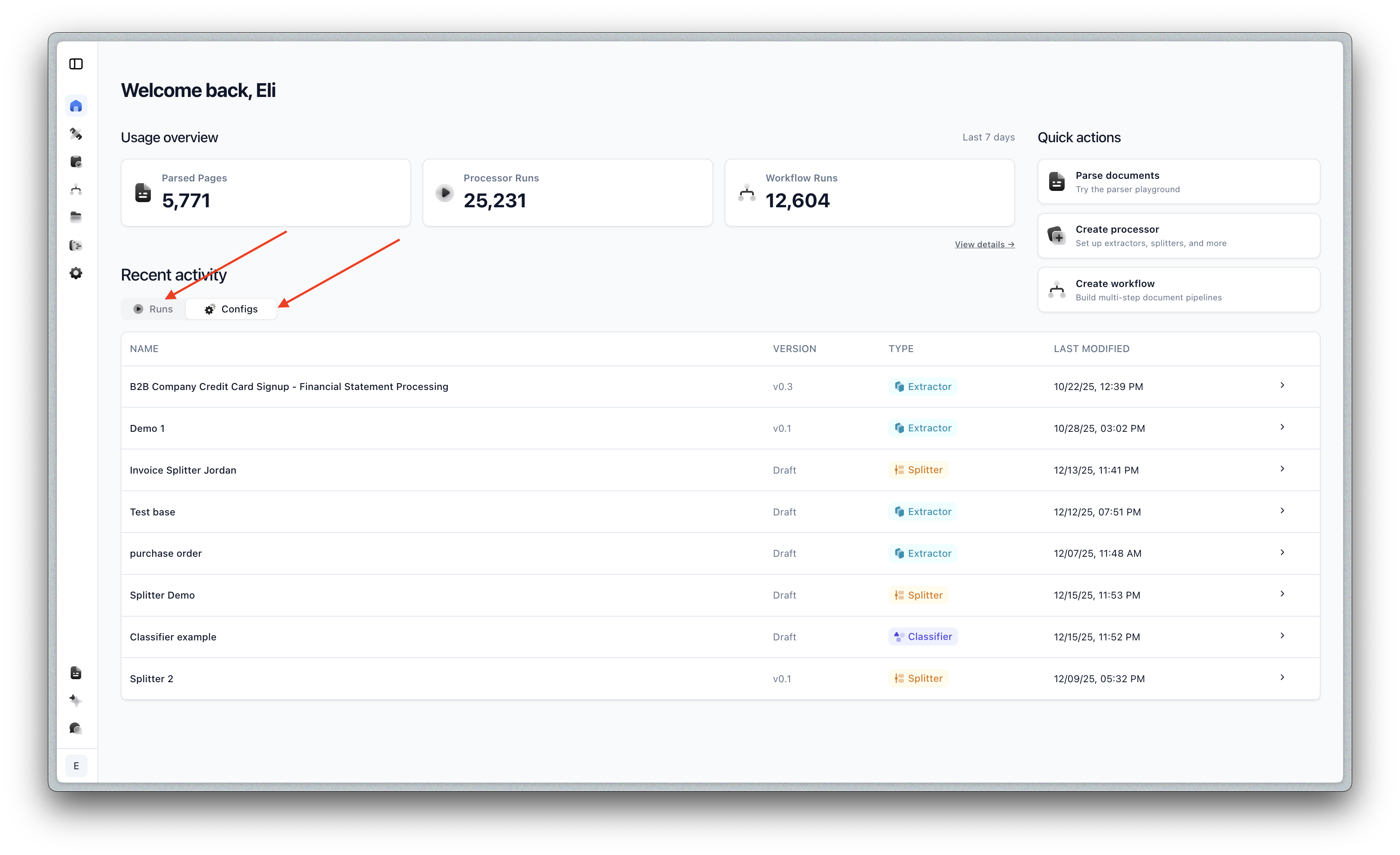 - All the most recent runs (parse/extract/split/workflow/etc) in one place