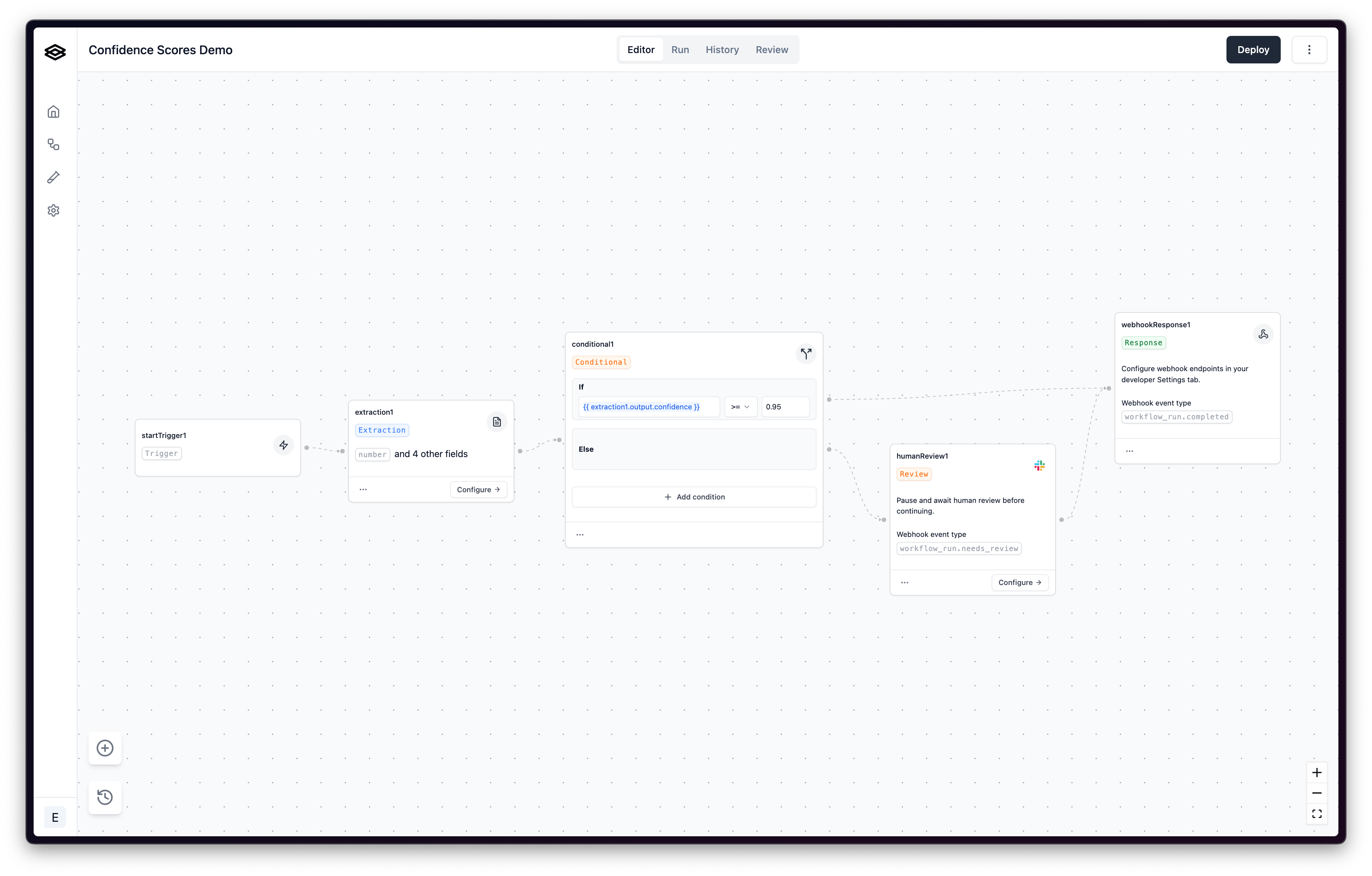 Fields Array processors can use confidence scores in conditional steps for routing decisions: