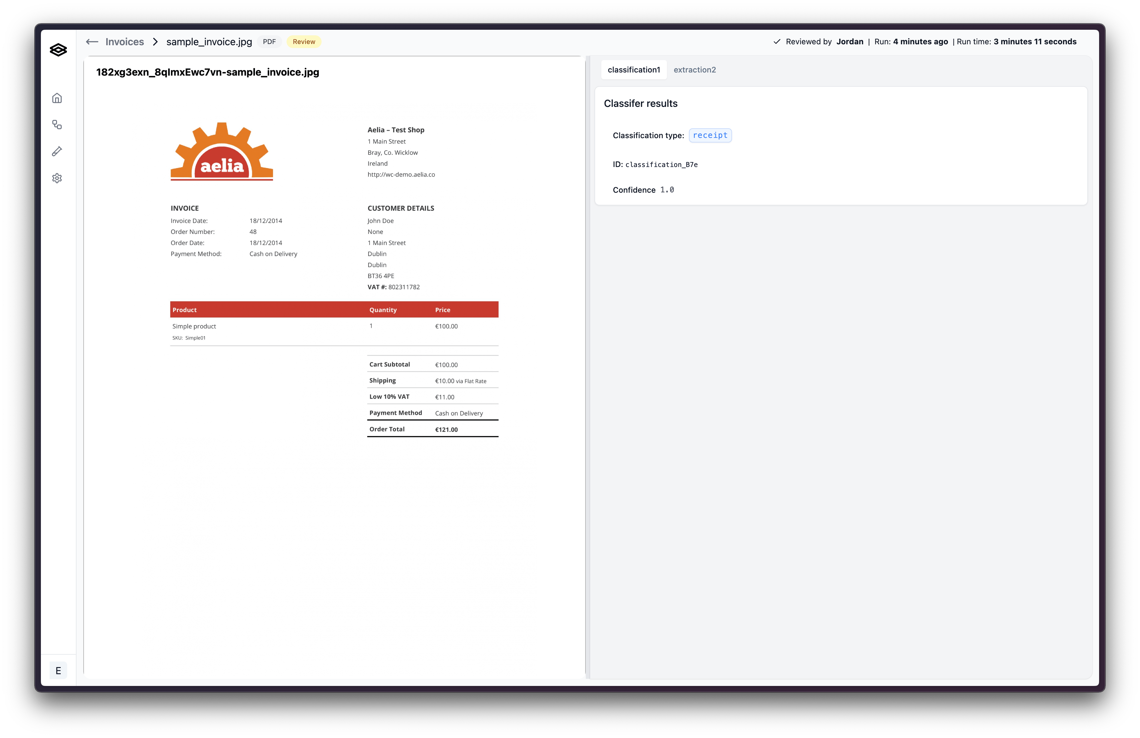 If you find that the document is not valid and should not be processed further, you can reject the workflow run. To do this, click the “Reject” button in the top right corner of the review page.