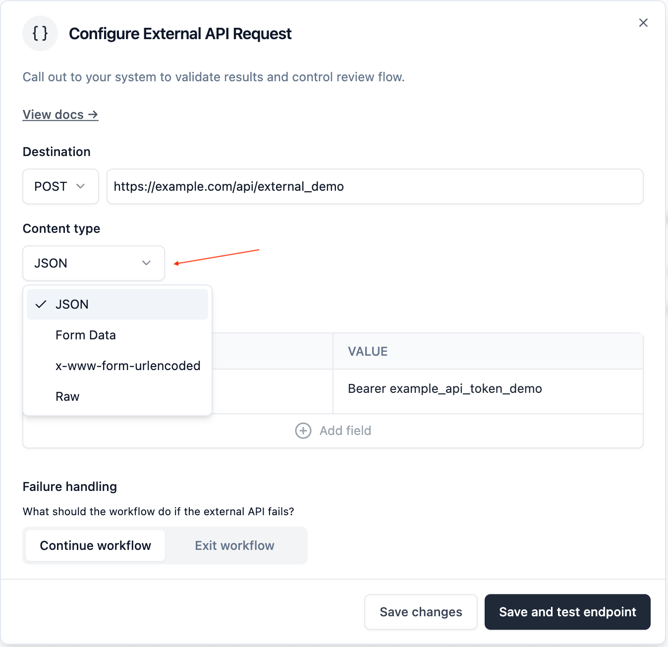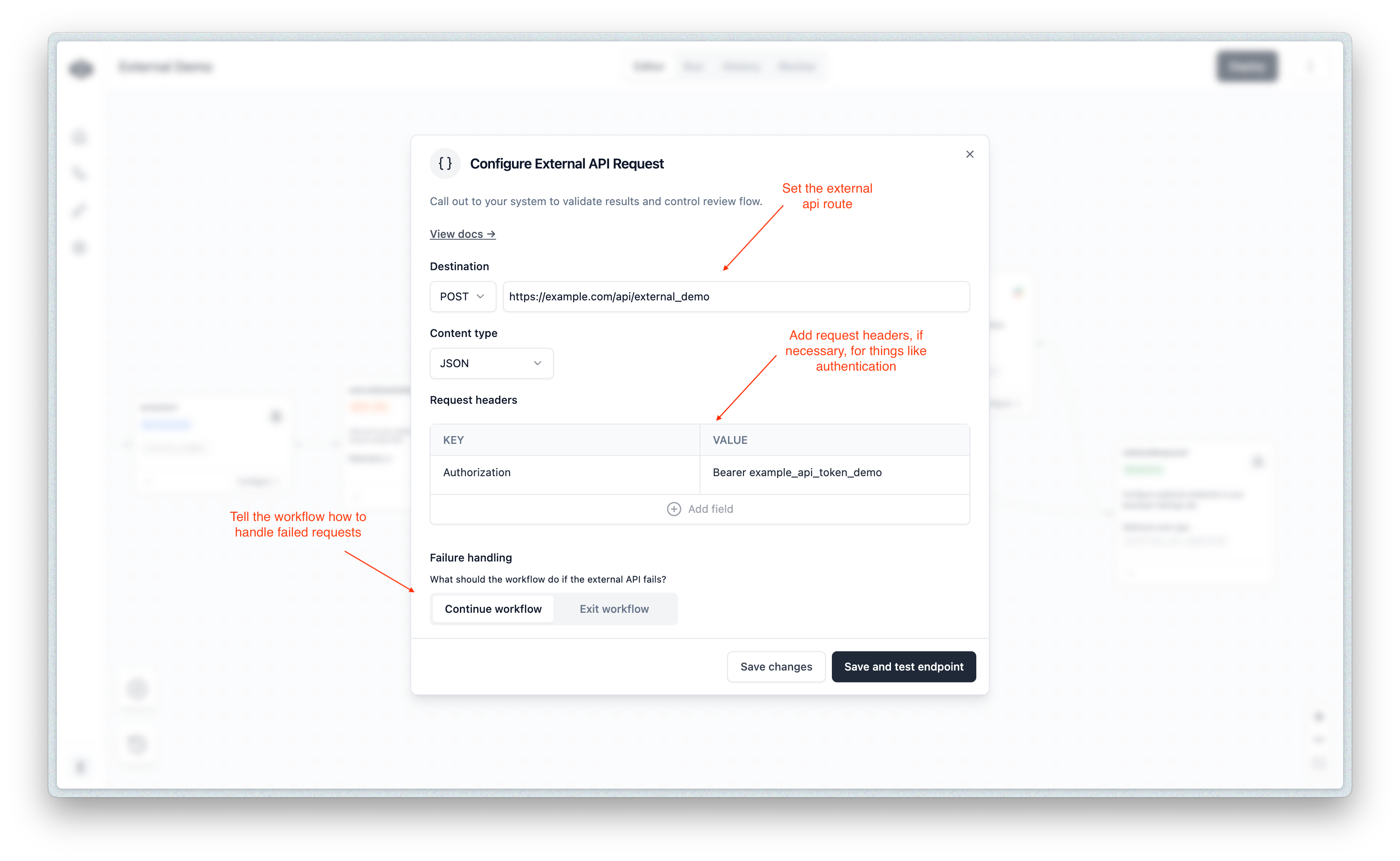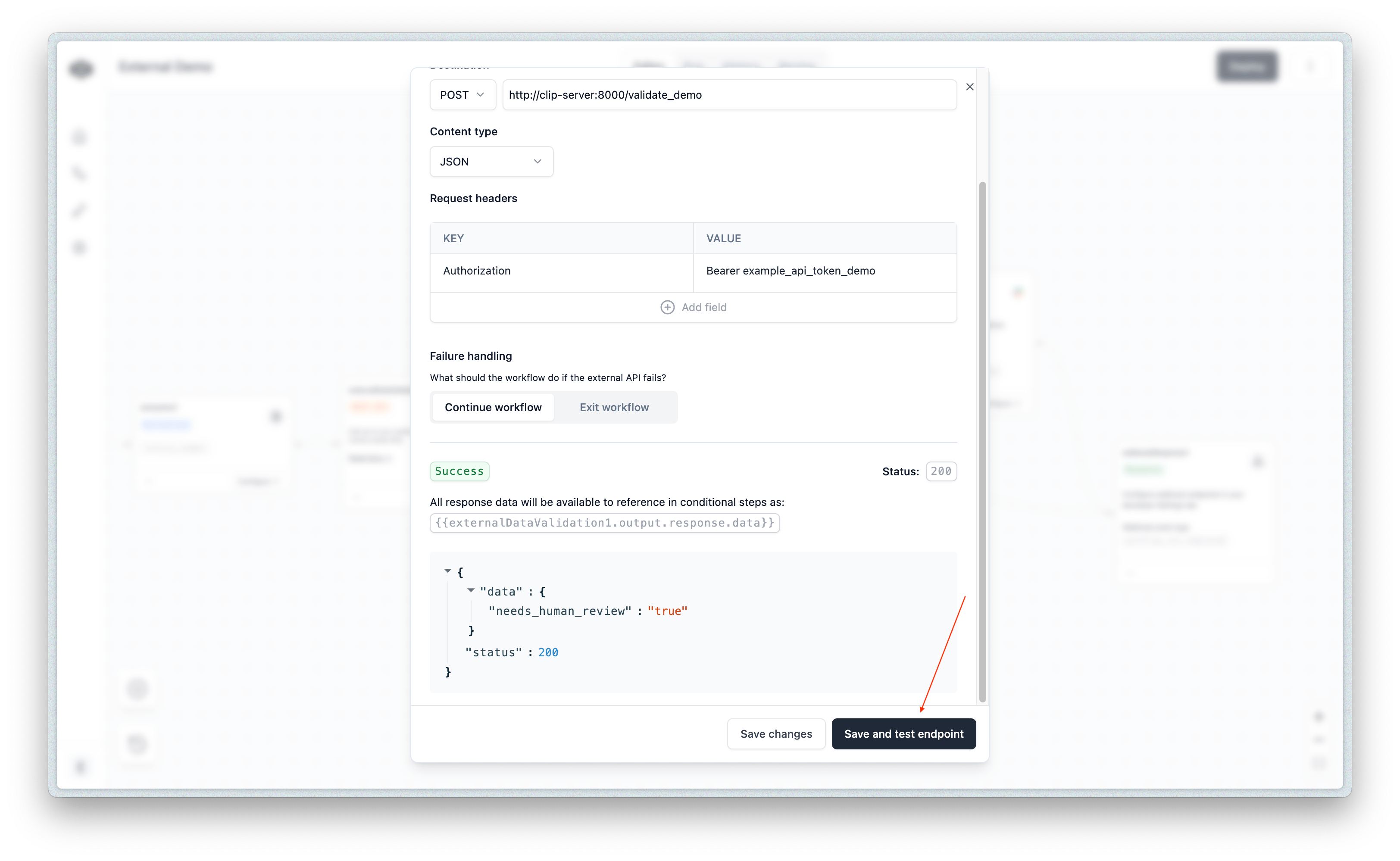Once you have configured the step, you can test the request by clicking on the “Save and test endpoint” button.